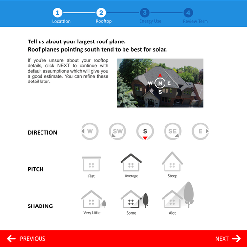 Icons that serve as buttons and allow a user to easily specify information about their rooftop.