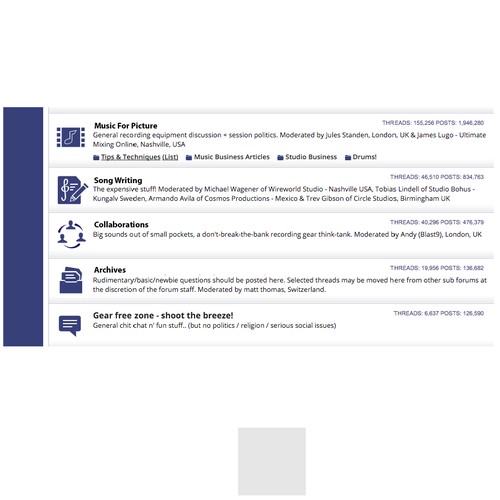 Online forum community for people that record / create music. (Audio Engineers, Musicians and Producers)