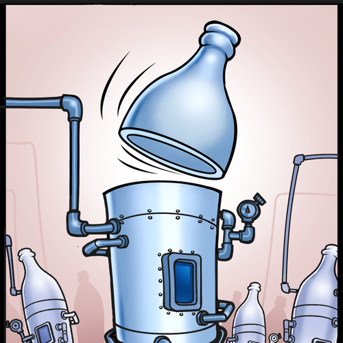 We're wanting a cool little cartoon about a bottle getting it's head chopped off....