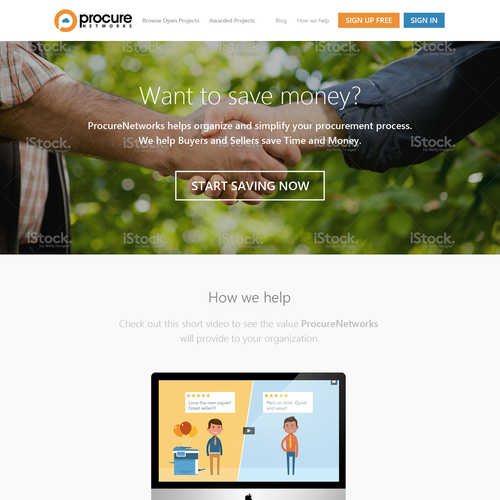 We need an improved landing page for a web app that connects Buyers and Sellers. We simplify the business purchasing ...