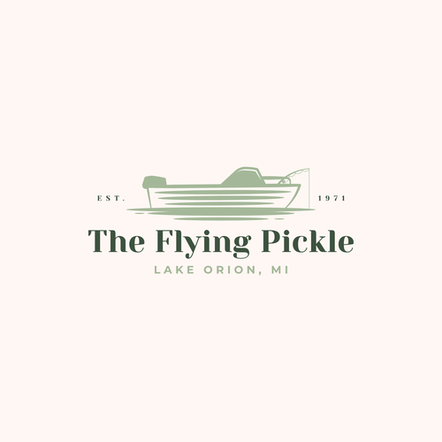The flying pickle is a 1971 retro boat in sage green. I want a logo design for the back of this 15 foot cruiser and the