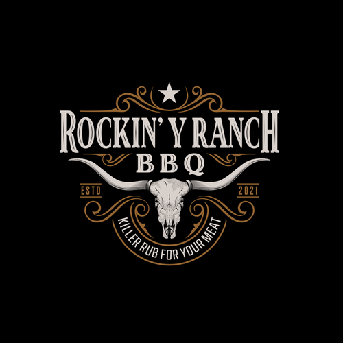 This is a logo for a BBQ Rub company - called Rockin' Y Ranch. Rub is used to flavor and spice all types of meat & food