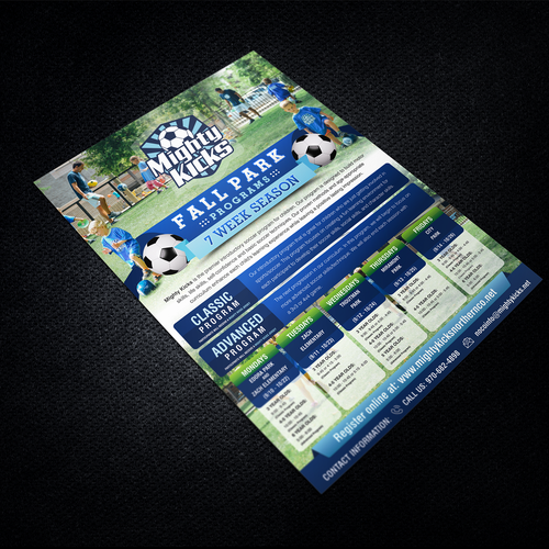 We offer a soccer enrichment program for 3-6 year olds. We need to design a flyer/full page advertisement that promotes