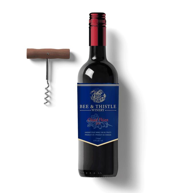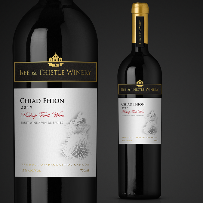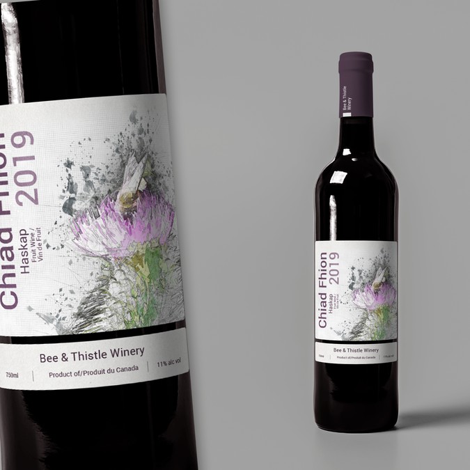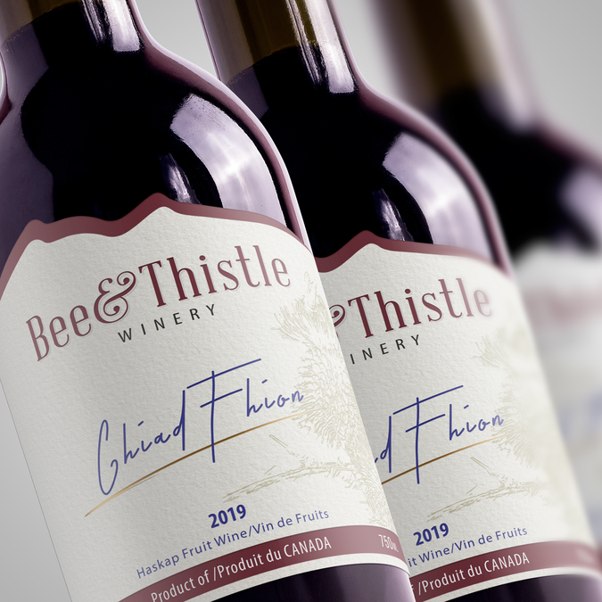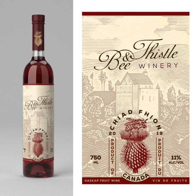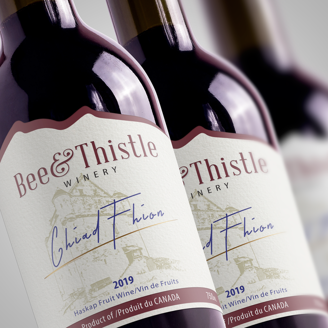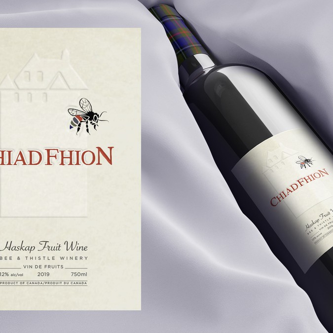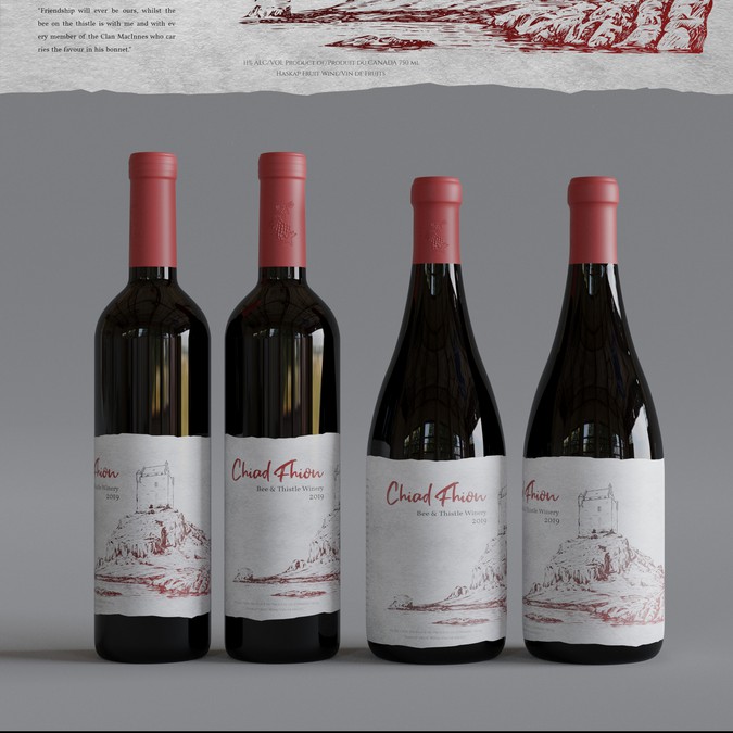 Please select your favourite label, keeping in mind appeal to the broadest range of customers, the ideals of Bee & Thistle which in part includes a nod to our heritage, and features on our label some representation of either/and the bee and thistle/Kinlochaline Castle/tartan. The castle is our clan MacInnes seat in Scotland. The contest designers were asked to include the legal elements as well as the name of the individual release (in this case Chiad Fhion) featured prominently. Thank you for your participation. Peter/Margaret/Anne/Collin for Bee & Thistle Winery, Inc.