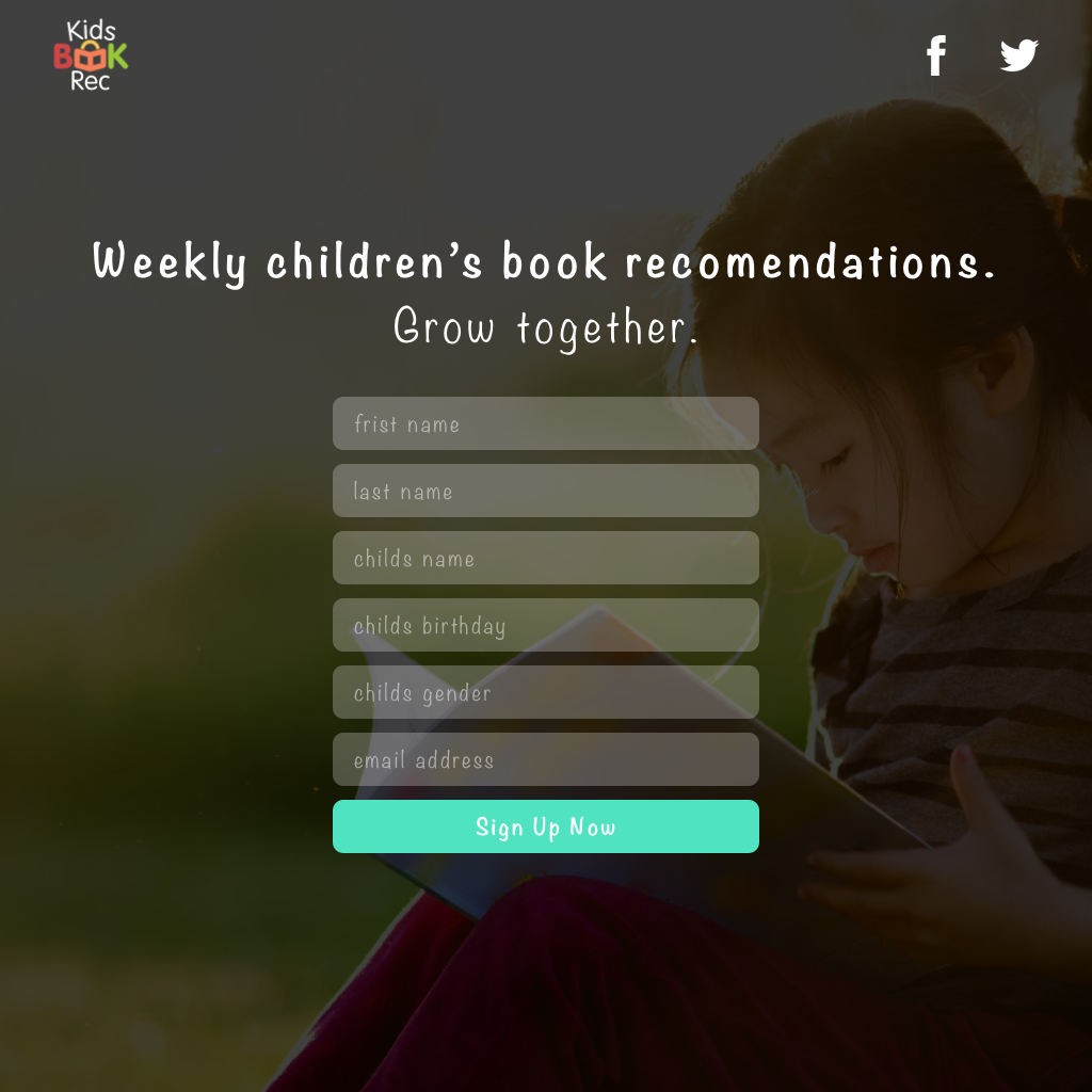 Landing page design for KidsBookRec