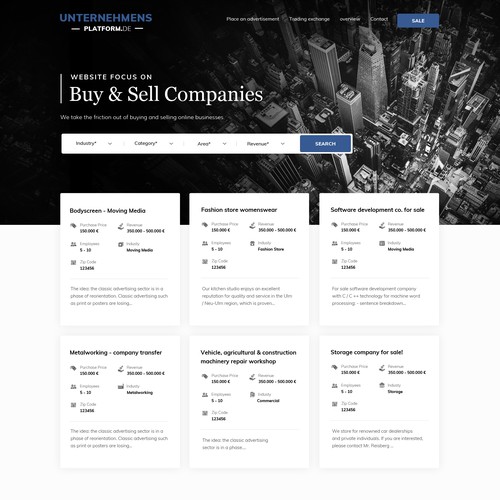 We are a financial website focus on buying and selling companies. (Merger and acquisition). You can use a search form to