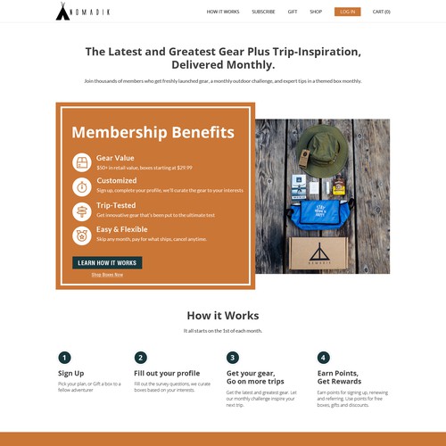 www.thenomadik.com we're the premier subscription box for adventure. Each month we delivered a theme boxed packed with t