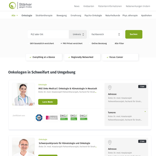 StärkergegenKrebs is a platform that gives cancer patients the opportunity to search and find certified and quality-assu